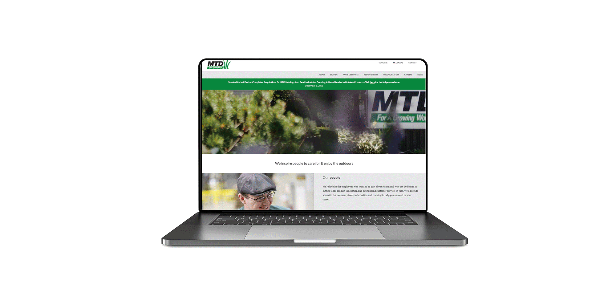 I collaborated on the in-house rebranding of the MTD Products website, helping refresh it with a more modern, user-focused look and feel. Working as a small, efficient team with myself as the designer alongside one web developer and a copywriter, we redesigned the site to improve navigation, clarity, and overall user experience. The update leveraged the latest photography and a cleaner visual language to better reflect the brand, while being completed entirely in-house and resulting in significant cost savings without sacrificing quality or impact.